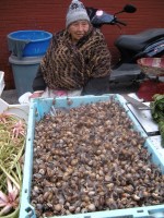 We started out at the market, and decided on a menu of Tapenade de Aceitunas Verdes y Almendras (olive and almond tapenade), Gambas Al Ajillo (prawns in garlic oil), Razor and Regular Clams, Escalivada con Salsa Romesco (baked vegetables with a vinaigrette and romesco sauce), and Dorada a la Sal (Sea Bream baked in a salt crust). Our sweet was Mantecados, a traditional Spanish powdered sugar cookie.