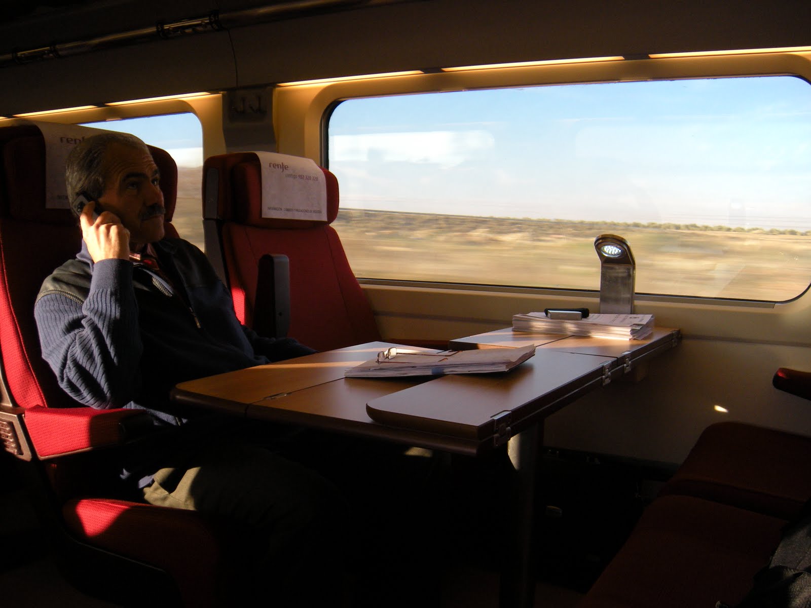 I arrived on the highspeed AVE train from Sevilla at 10:00 this morning (early, I might add), and if anyone is considering traveling between the two cities, you won’t be sorry if you take this train. Modern is an understatement. The seats were as big as business class on a 747, and along the left-hand side of the train, it was single seats only at the window. That’s where I enjoyed Slumdog Millionaire from as we whisked along the rails for the 2.5-hour journey. Cake.