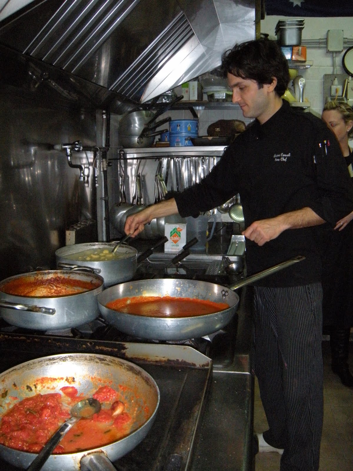 Chef Andrea Consoli led our class of eight people in one of the tiniest restaurant kitchens I have ever seen. To him, it was heaven, and it was obvious how much he loves his job as a chef and teacher as he whisked around the itty bitty space teaching us the recipes for the aforementioned dishes. We would be his pupils and guests in the restaurant for a solid five hours.